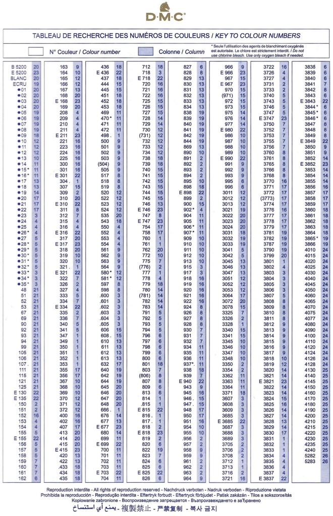Dersom du ønsker å kjøpe komplett fargekart med tråder og ikke bare bilder, finner du det her Fargekart DMC